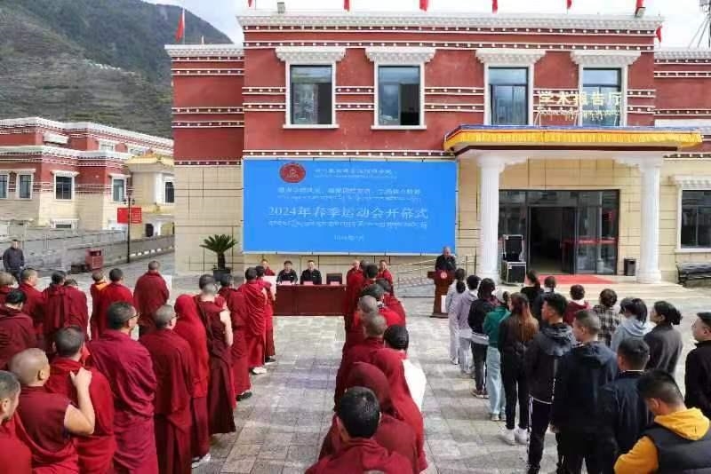 4月24日,四川藏语佛学院阿坝分院2024年春季运动会开幕,院领导索朗永忠、南木尔甲、夺吉华出席开幕式。