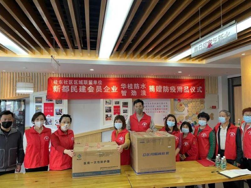 近期,新都区石板滩街道、传化物流基地先后有人确诊新冠肺炎,疫情防控形势十分严峻。4月20日,为助力社区疫情防控工作,民建新都总支会员企业成都华桂防水保温工程有限公司、成都市智劲浪文化传播有限公司向桂东社区捐赠一批防疫用品。