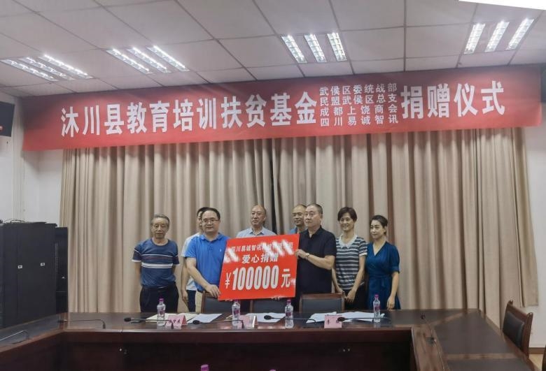 8月23日下午,中共武侯区委统战部、民盟武侯区总支、四川易诚智讯科技有限公司捐赠沐川县教育培训扶贫基金仪式在沐川县乡村振兴局会议室举行。中共武侯区委统战部常务副部长王睿,民盟武侯区总支主委、武侯区就业局局长李璇,民盟武侯区总支委员、电子科技大学易诚智讯研究院院长占梦来,沐川县委常委、县总工会主席周威洋,沐川县人大常委会党组副书记、副主任卿玉彬,以及沐川县乡村振兴局、沐川县妇女联合会相关领导出席捐赠仪式。