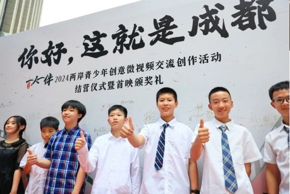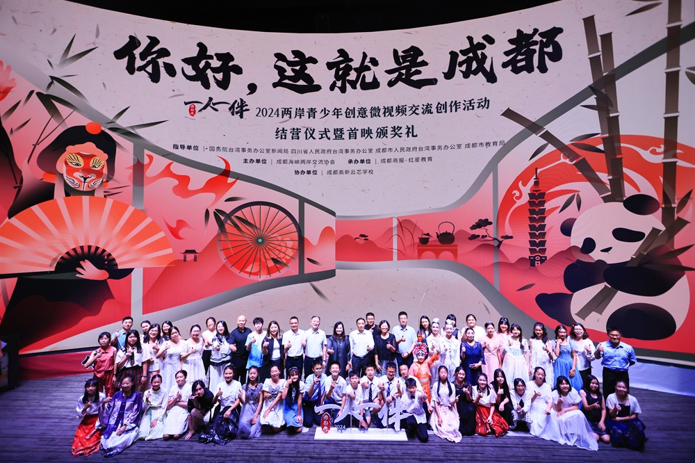 7月27日,“‘一人一伴·微拍秀’2024两岸青少年创意微视频交流创作活动”结营仪式暨首映颁奖典礼在有百年历史的成都新明电影院举行。本届活动以“你好,这就是成都”为主题,邀请海峡两岸青少年一人一伴、携手同行,沉浸式感受历史文化古迹、探秘灿烂古蜀文明、品尝正宗川味美食、触碰城市发展脉搏,用镜头记录生活,用创意讲述故事,历经一周的研学拍摄,最终四部微视频作品在万千期待之下揭开神秘面纱。