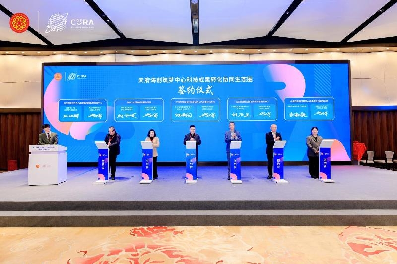 此外,围绕打造科技成果转化协同生态圈,天府海创筑梦中心携手多方合作伙伴——“东方电气海归新侨科技成果转化中心”“轨道交通前沿技术海归新侨服务中心”“无人机新材料与人工智能海归新侨服务中心”“海归人才科技成果转化项目”“中国西部海归科技人才成果转化战略合作”等进行现场签约。