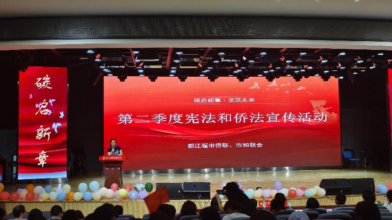 5月28日,都江堰市侨联、市知联会在四川工商职业技术学院联合开展了以“碳启新章·法筑未来”为主题的宪法、侨法宣传活动,让法治的种子在高校学生心中生根发芽。都江堰市委统战部、市侨联、市知联会相关人员及四川工商职业技术学院师生300余人参加本次活动。