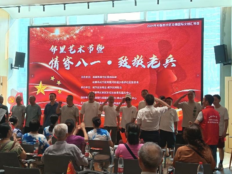 为传承红色基因,弘扬爱国主义精神,构建代际互助的公益文化,八一建军节前夕(7月31日上午),由成华区委统战部指导,区新联会、网联会联合主办的“同心聚智·爱心传递”系列公益行动之“同心·传薪”——红色记忆致敬行在杉板桥社区温暖举行。此次活动聚焦社区50位退役军人,通过文艺表演与爱心慰问相结合的形式,向他们致以崇高敬意和诚挚问候。
