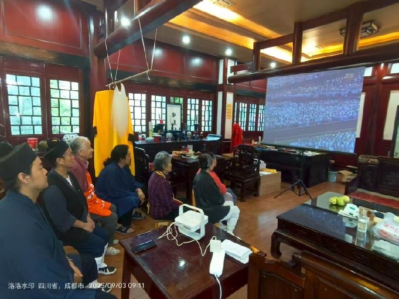 青城山天鹤观组织教职人员集中观看阅兵直播
