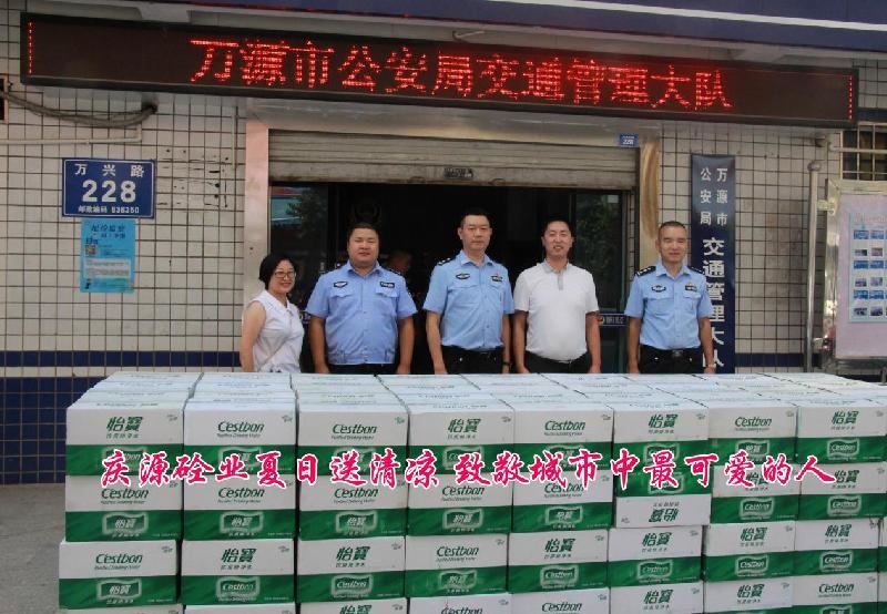 万源市工商联副主席、万源市庆源砼业公司总经理杨晓国:8月17日,杨晓国带领公司员工,向战斗在高温中,守护道路交通安全的万源市公安局交通管理大队送上矿泉水150件,并向他们表示诚挚的感谢,一线公安交警深受感动和鼓舞。