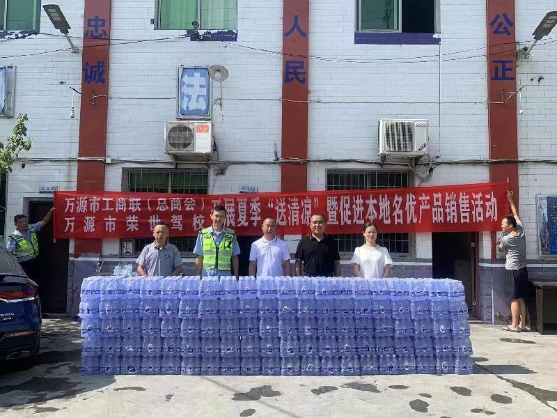 万源市总商会会员企业、万源市荣世驾校校长夏泽江:8月22日,夏泽江带领员工,分别到市综合执法局、交警白沙中队和铁矿镇白果坪村开展高温“送清凉”活动,向奋战在一线的交警和党员干部送去矿泉水500件。夏泽江表示:“看着党员干部和公安交警头顶烈日,挥汗如雨不服‘暑’,履职尽责守岗位,他深受感动,想以微薄之力表达对党员干部和公安交警的敬意。