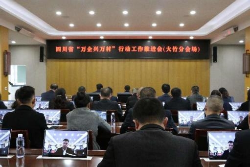 近日,全省“万企兴万村”行动工作推进视频会议在成都召开,省、市、县三级“万企兴万村”行动领导小组成员单位负责同志、商(协)会和民营企业代表参加会议。李志超书记代表大竹县作为全省唯一区县交流发言。