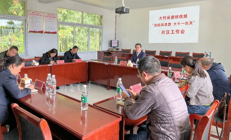 10月10日上午,大竹县委统战部组织竹阳街道、石河镇等片区统战委员到朝阳乡进行考察交流,并召开“决战四季度、大干一百天”片区工作座谈会,县委统战部常务副部长、台办主任、侨务办主任李晓庆出席会议并讲话。