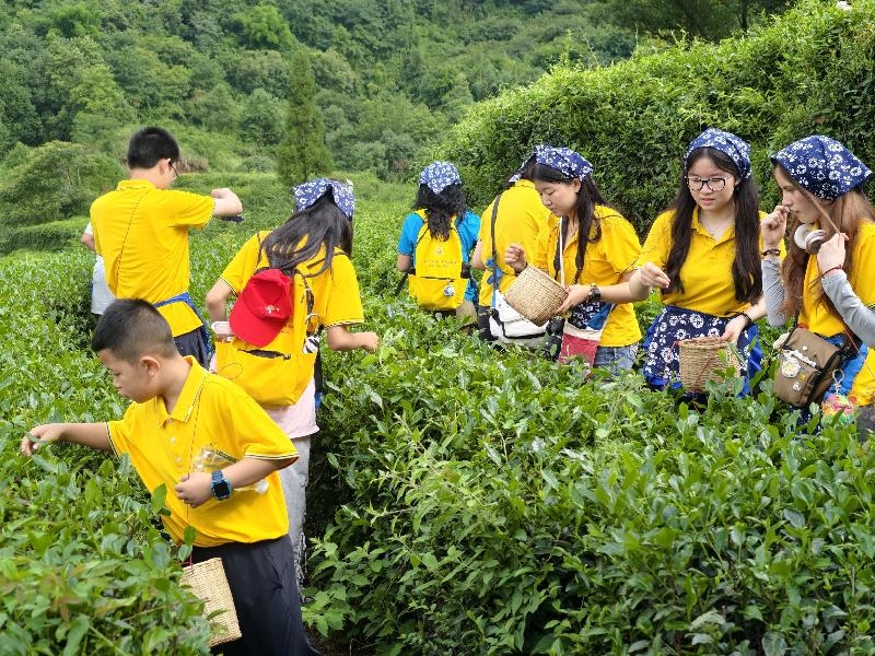 走进赵坡茶仙谷博览园,在国家级高级茶艺师、非遗传承人陈翠琪老师指导下,营员们化身“小茶农”,在薄雾中,指尖轻捻茶芽体验“一芽一叶”的采摘之道。来自英国的华裔青年说:“原来茶叶只是茶树上最尖端的嫩叶,新鲜的茶叶尝起来第一口很苦,后面又有点清甜,很神奇”。