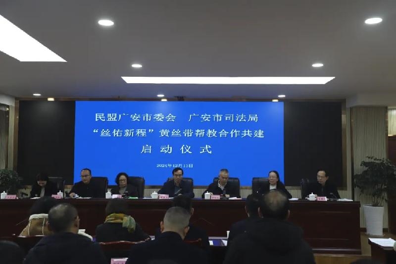 为贯彻落实民盟中央、司法部关于“黄丝带帮教”工作有关要求,推动广安市“黄丝带帮教”工作持续深入,12月13日,广安市“丝佑新程”黄丝带帮教合作共建启动仪式在市司法局三楼会议室举行。民盟广安市委会主委、市人大常委会副主任贺宗飞,广安市司法局党组书记、局长李廷远,党组成员、政治部主任宋隆治,民盟广安市委会副主委殷云、黄雪兰、罗明轩,秘书长王莹莹出席活动。市司法局党组成员、副局长赵小涛主持仪式。