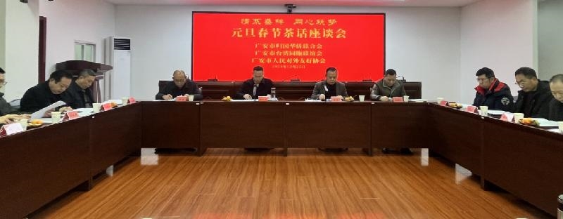 在2025年元旦、春节来临之际,广安市侨联台联友协召开元旦春节茶话座谈会。市侨联党组书记、主席王久龙主持会议,市侨联领导班子,兼职副主席,各县(市、区)侨联台联主要负责人、归侨侨眷及侨台界人士等40余人欢聚一堂、共叙情谊、共话发展。
