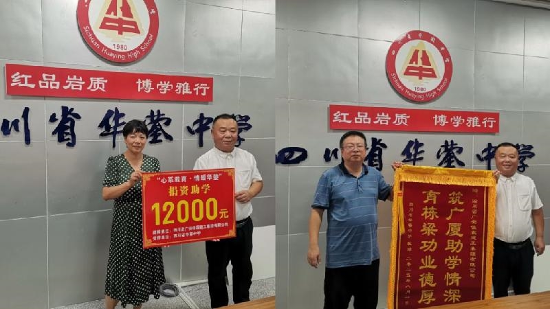 8月1日,民盟华蓥市支部邀请民盟广安市委会企联会副会长、广安佳霖建工集团董事长邹佳霖来到四川省华蓥中学开展捐资助学活动。民盟华蓥市支部主委、华蓥市政协副主席杨秀君出席活动。此次活动聚焦于3名在今年高考中取得优异成绩的家庭困难学生,为他们每人送去4000元助学金,用实际行动为追梦学子们插上腾飞的翅膀。