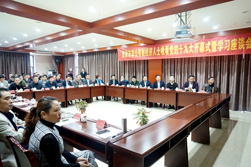 10月18日,自贡市召开非公有制经济人士收看党的十九大开幕式暨学习座谈会。与会的非公有制经济代表人士集中收看了党的十九大开幕盛况,认真聆听习近平总书记代表党的十八届中央委员会向大会所作的报告,并在收看后开展学习讨论。
