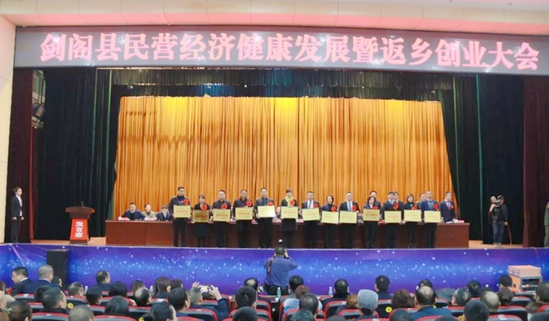 1月18日,剑阁县民营经济健康发展大会在县影视文化中心召开。县四大班子在家领导、县法检两长、县纪委监委班子成员,县委各巡察组组长,县级各部门、各乡镇负责人及分管民营经济工作的领导,受表扬的优秀民营企业家、个体工商户负责人及返乡创业先进个人共计700余人参加大会。广元市人大常委会副主任、剑阁县委书记向永东出席大会并作重要讲话。大会由县委副书记、县长张世忠主持。
