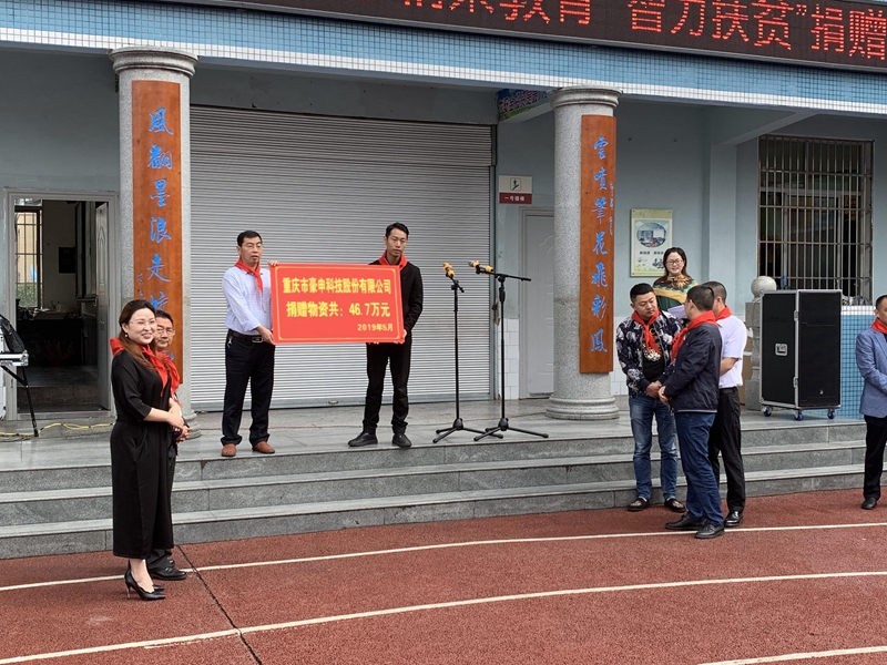 五龙小学校长王文生及学生代表向民营企业和社会各界给教育事业、智力扶贫的支持关爱表达由衷的敬意,表示一定不辜负党和政府的殷切期望,不辜负重庆豪申科技公司的关心帮助,努力办好人民满意的教育。