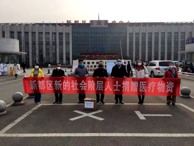 区党外知识分子联谊会和新的社会阶层人士联谊会积极响应统战部倡议,知联会组织会员向新都区红十字会募捐7700元现金;区新的社会阶层人士联谊会募集体现金10100元,购买口罩3000个捐增给防护物资缺乏的区人民医院和大丰城南派出所。