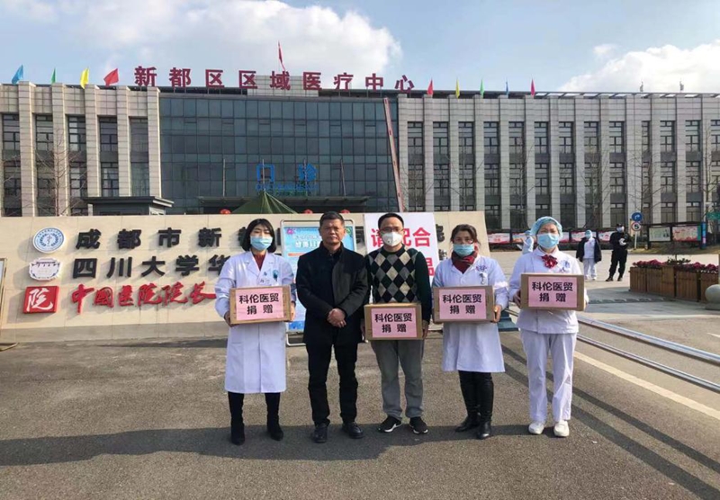 区工商联会员企业科伦医贸易集团向防疫指挥部、区人民医院、区人武部捐赠医用口罩5万个口罩、一次性PE检查手套、消毒液等价值共计252640.00元。四川奥洁消毒设备有限公司向社会捐赠空气消毒机9台价值共计11.72万元,并组织员工加班加点为湖北一线医院生产供应消毒设备;成缸液压设备公司赖家云通过海外渠道从澳洲进口3000件医用防护服捐给新都区抗疫指挥部。成都天田医疗电器科技有限公司干部职工发扬“一方有难、八方支援”精神,面对疫情,加班加点组织生产,及时补足货源,积极为疫情防控献计出力,贡献新都民企的爱心和力量。