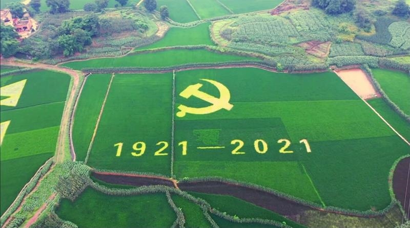 这是雷达村和齐心村两村乡联会成员共同试点种植的50亩彩色水稻,以“党建引领乡村振兴”为主题,通过白、黄、黑、紫四色水稻拼接造型,相互穿插组合,呈现出庆祝建党100周年、耕地牛+乡村振兴、花朵+衣锦喻寺、新能源标志井架四个巨幅图案。