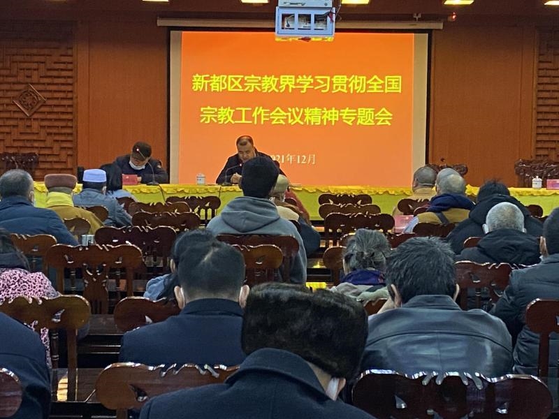 12月7日,中共成都市新都区委统战部召开全区宗教活动场所(点)负责人学习会议,传达学习习近平总书记在全国宗教工作上的重要讲话精神,对全区宗教界抓好学习贯彻进行安排部署。