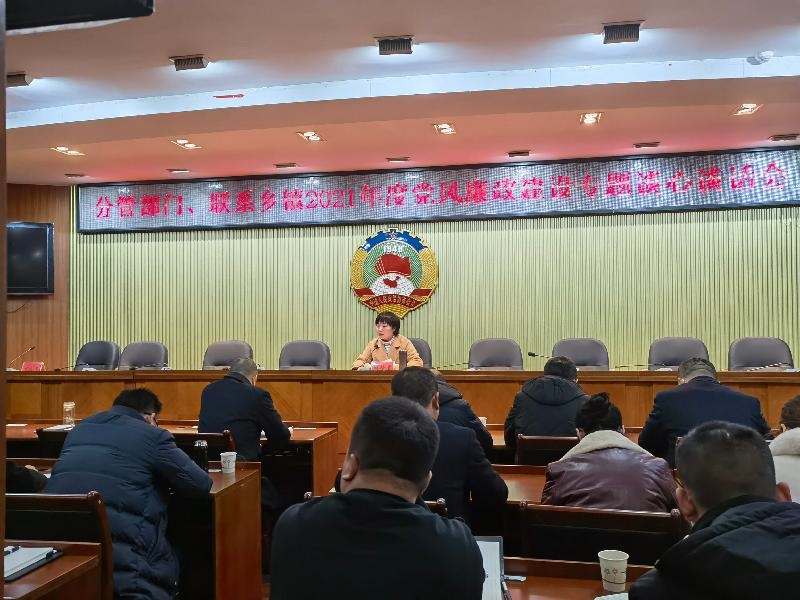 1月5日,遂宁市蓬溪县召开统战系统2021年度党风廉政建设专题会暨集体谈心谈话会。县委常委、统战部部长鲜艳君主持会议并讲话,县委统战部、工商联、各民主党派等参加会议。