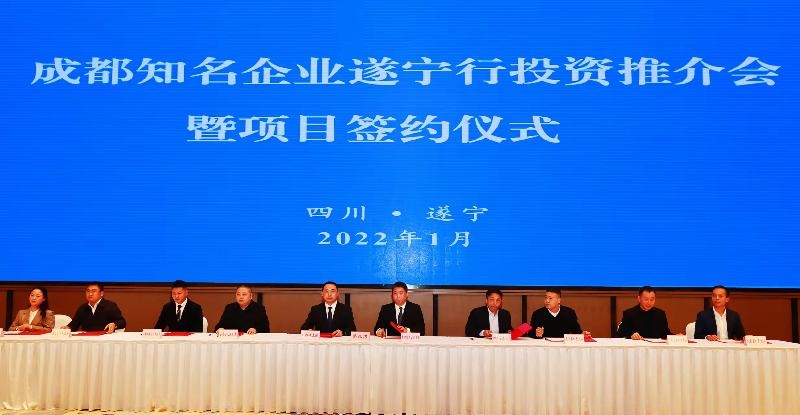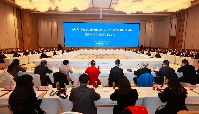 1月6日,成都知名企业遂宁行投资推介会暨项目签约仪式举行。遂宁市委书记李江,成都市委常委、统战部部长、市总工会主席吴凯出席并分别致辞。市政协主席杨军陪同调研。市委副书记景临主持会议。