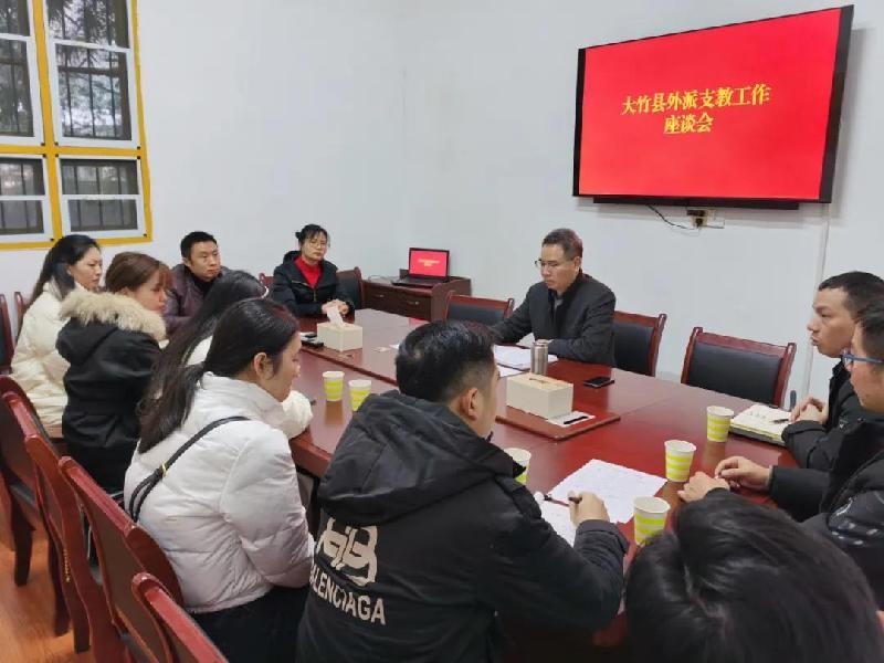 近日,达州市大竹县召开外派支教工作座谈会。大竹县委统战部常务副部长、台办主任、侨务办主任李晓庆出席并讲话,教科局、公安局相关负责同志参加会议。