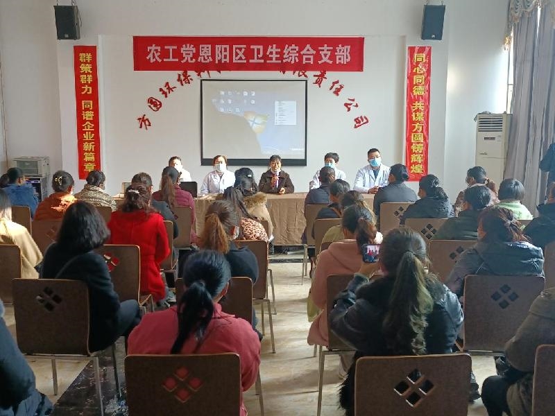 为庆祝“三八”妇女节,保护妇女同胞健康权益,提高妇女健康知识知晓率,3月4日,农工党恩阳区总支组织专家党员深入方圆科技公司开展迎“三八”关爱妇女健康活动。