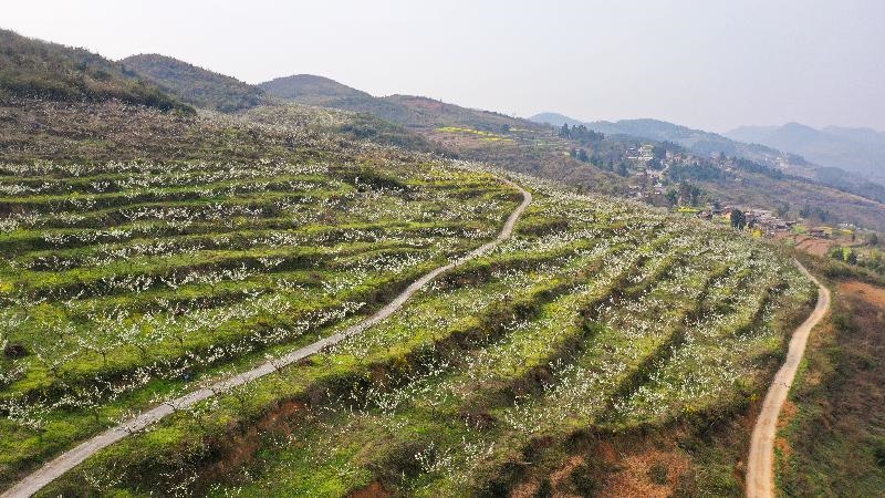 春风和煦,万物复苏,近日,泸州市古蔺县太平镇煌家村乡贤示范园区的蜂糖李花竞相绽放,清香淡雅的李花在风中摇曳,扮靓了山头的同时,让人仿佛看到了今年丰收的希望。