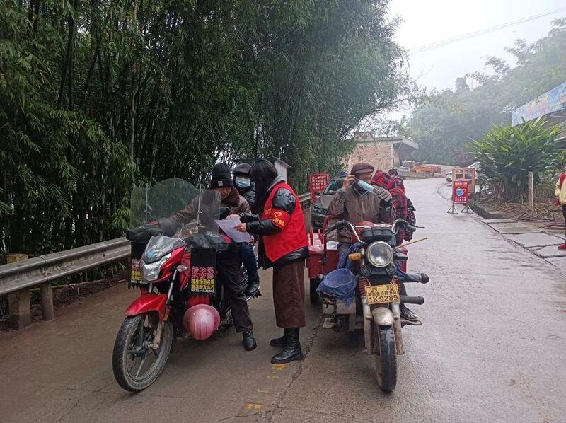 疫情防控有我在,请放心! “大爷,赶场天把口罩戴好嘛!现在外面疫情有点凶哦!我们要保护好自己。”“大姐,来这儿扫个场所码,现在我们进入场镇赶场都要扫场所码。”志愿者主动加入疫情防控值守的队伍,严谨细致地做好车辆及个人信息登记,对不符合防疫要求的人员、车辆一律劝返,坚决守好卡口护好通道,筑牢疫情防控一线“桥头堡”。“从早上来到劝导点到下午离开劝导点,腿都站酸了,但是能为家乡做点事,很值得!”志愿者罗义权自豪地说道。据了解,防疫防控工作开展以来,全县有250余名志愿者参与防疫防控各项工作,确保了防疫防控各项措施的有效落实。