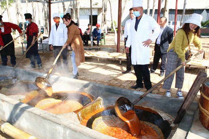 3月8日,米易华森糖业有限责任公司迎来一批特殊客人,她们是龙佰四川矿冶有限公司的职工,专为体验传统古法纯手工熬制米易红糖而来。