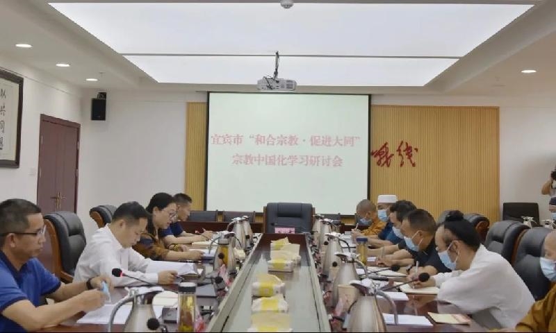 6月8日,宜宾市召开“和合宗教·促进大同”宗教中国化学习研讨会,全市30余名宗教界代表人士参加会议,市委常委、统战部部长陶学周出席会议并讲话。
