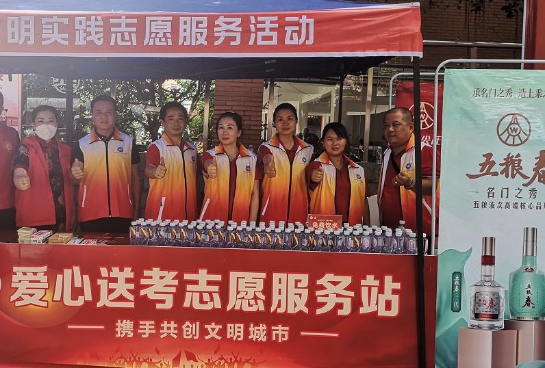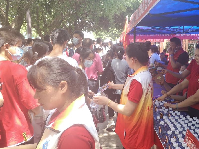 今年高考期间,东兴区工商联会员爱心企业(内江悦来兴达商贸有限责任公司)为高考老师和学子献爱心。一群身着橘黄色工商联志愿者服装的送水志愿者在内江六中、内江一中、内江二中、翔龙中学等四个校门口设立了免费送水点,给服务高考的老师、赴考的学子及家长们送上一份清凉与关爱,同时也为学子们加油助威。