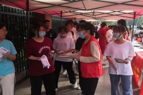 活动现场,志愿者们向有需要的考生发放矿泉水、饮料、扇子、考试用具、口罩及避暑药物等,做好考生们的服务保障工作,并积极鼓励他们,为他们加油打气,希望他们能够考出好成绩。同时在家长校外陪考等候期间,也耐心和他们聊天拉家常,以此来缓解他们的紧张情绪。