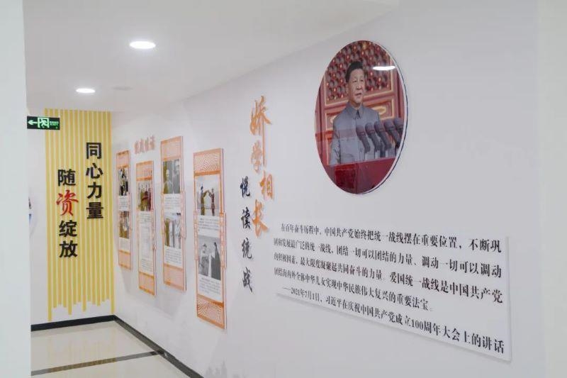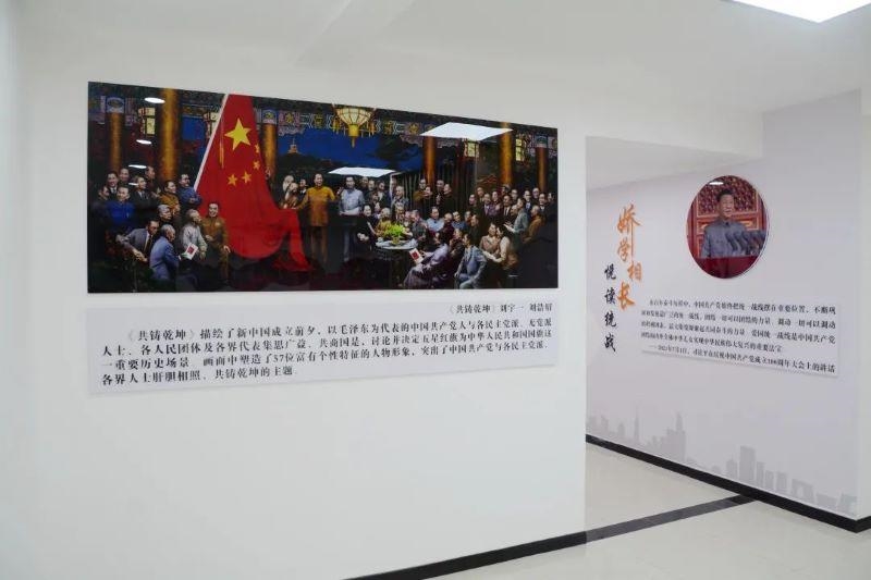 “这幅画是《共铸乾坤》,描绘了新中国成立前夕,以毛泽东为代表的中国共产党人与各民主党派、无党派人士、各人民团体及各界代表集思广益、共商国是,讨论并决定五星红旗为中华人民共和国国旗这一重要历史场景……”在社区工作人员的带领下,一幅幅描绘统战工作的形象墙和功能性场所展示在大家面前,这也是资阳高新区第一个社区统战工作阵地第一次正式亮相!