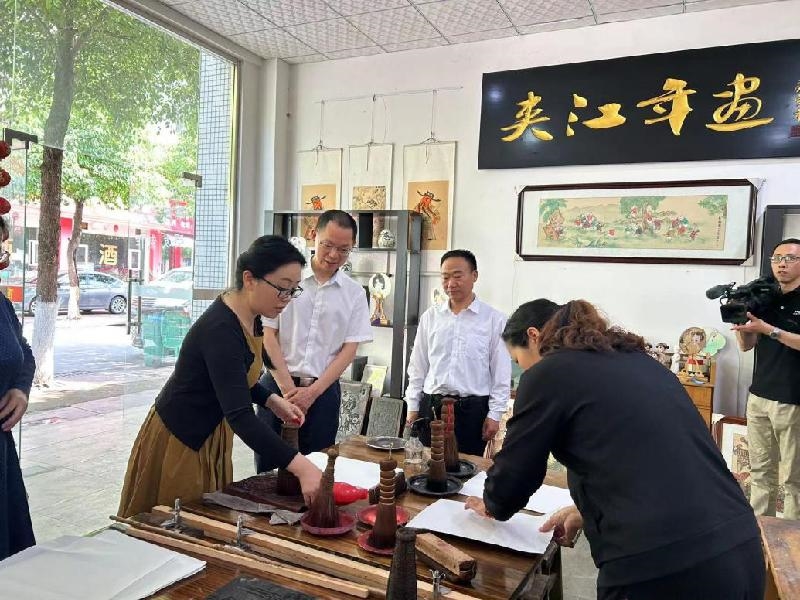 调研组一行还来到熔彩堂调研国家级非遗夹江年画传承,参观了九三学社创始人许德珩为夹江的题词石刻,实地考察夹江文旅产业发展情况。