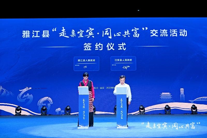 活动以“浓情宜雅·流传三江”为主题,通过雅江文旅发展成果宣传展示、招商引资推介签约、宜雅文艺演出等多种形式,充分展现了在甘孜州委、州政府的坚强领导和宜宾市的倾情帮扶下,雅江县近年来推进脱贫攻坚和乡村振兴发展成果,歌颂了宜雅两地十余年结对共建深情厚谊。活动中,雅江县人民政府与江安县人民政府、四川酒业茶业集团公司、市职业技术学校和宜宾丰川动力科技有限公司等现场签订了相关合作协议,进一步优化了合作共建机制,拓展了帮扶合作领域,深化了产业互补共融发展。