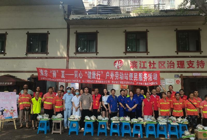 8月18日,南城街道滨江社区联合致公党江阳区基层委、四川力攀消防工程有限责任公司、泸州平康医院等生态滨江•涉水联盟共建单位在户外劳动站开展清凉“驿”夏—同心“健康行”便民服务活动,辖区环卫工人、城管、散居楼院管理员、保洁员、巡河员、快递员等40余名户外劳动者参加活动。