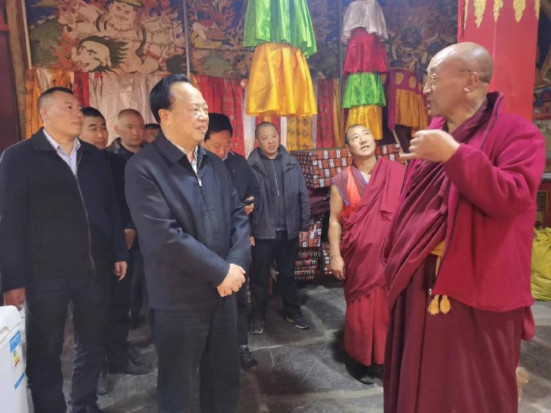 11月7日,阿坝州委副书记、统战部部长蔡清礼赴理县调研检查寺庙依法规范管理、民营经济等工作。