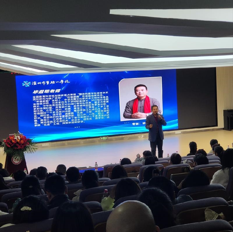 本次专题活动,邀请到了著名教育专家毕遐明教授。毕教授针对不同年段学生的特点,给教师和家长们提出了一些专业、科学的建议和具体可操作的方法。毕教授的分享,激励了家长朋友们做好孩子的榜样,做喜欢看书、热爱阅读的家长。他建议孩子们要读智慧的书,童蒙养正,少年养志,读经典读物,让孩子知书达理,学以致用,内化于心,外化于行。