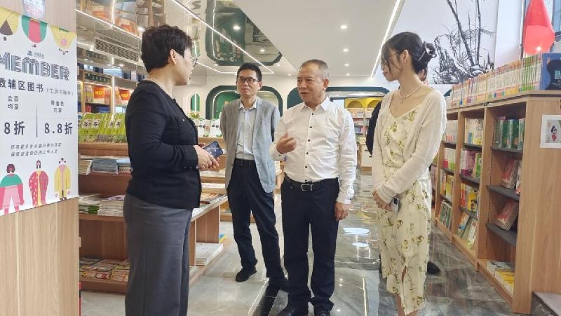 广元市亦道文化传播有限公司成立于2019年8月,近年来先后获得“广元阅读基地”“青年之家”“民建四川省委省级会员之家”等荣誉。在亦道书城(领地城店),陈正永一行参观了书城各个功能区,通过民建会员、公司总经理梁海霞的介绍,详细了解书城的文化定位、业态布局、运营思路以及经营状况,并对企业深耕广元文化领域取得的成绩表示肯定。