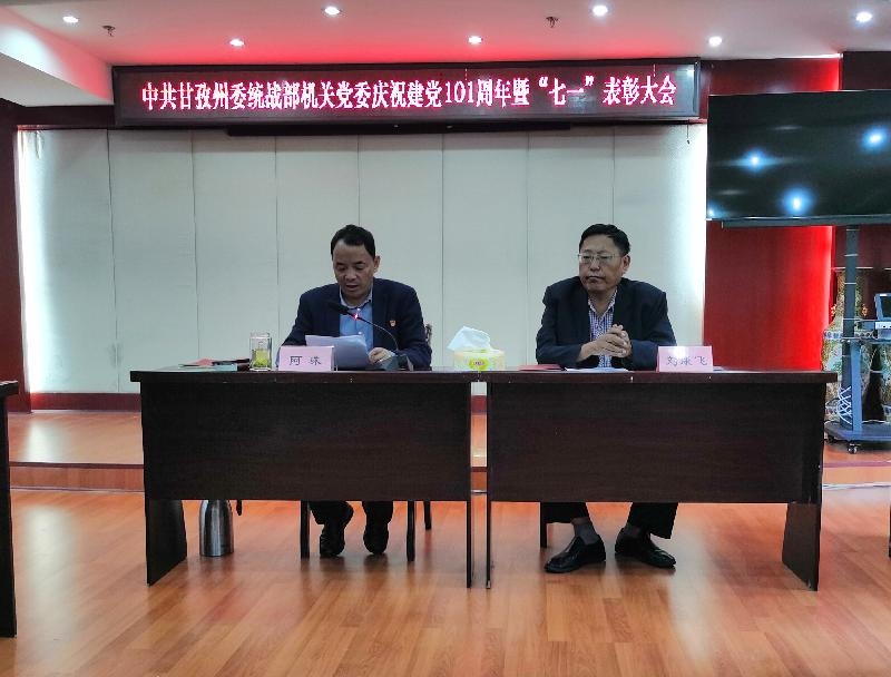 6月30日,甘孜州委统战部机关党委召开庆祝建党101周年暨“七一”表彰大会,激励统战系统广大党员干部在新的赶考路上不忘初心、牢记使命、踔厉奋发、砥砺前行,以更加昂扬的姿态迎接党的二十大胜利召开。会议由州委统战部机关党委书记阿珠主持。