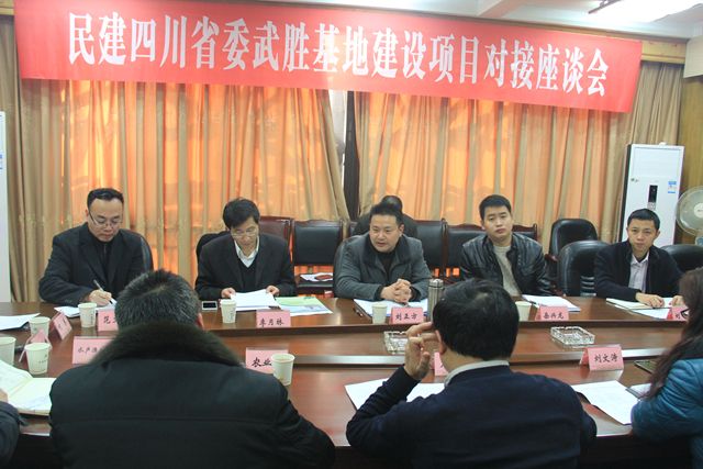2015年1月21日,民建四川省委到四川省各民主党派坚持和发展中国特色社会主义学习实践活动基地——武胜县开展合作共建项目实施对接。民建省委秘书长刘正方,通威集团、四川三友集团、四川现代教育集团相关负责人,武胜县副县长刘文涛、县政协副主席屈良斌及县相关职能部分负责人出席对接会。