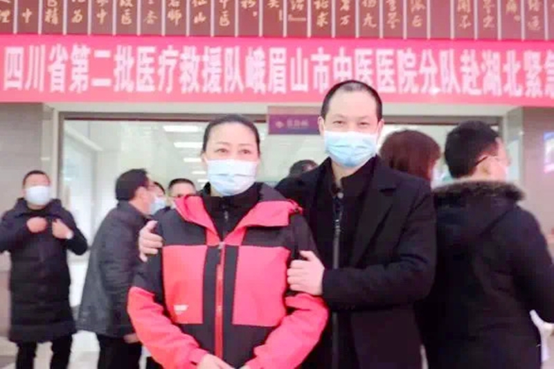 峨眉山市中医院院感科科长黄晓林于今年1月主动请缨,参加四川省第二批医疗队成员奔赴湖北武汉红十字会医院,抗战50多个昼夜,其丈夫郭明川在自家诊所加大赶制中医茶包的力度,每天为附近物质紧缺的群众免费发放茶包400多份。这对战“疫”伉俪虽分隔两地,却共同为抗击疫情贡献力量,践行着医生的诺言,并传为佳话。