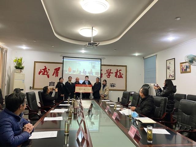 民盟乐山市委、峨眉山市总支、峨眉山市旅游学校相关负责人,爱心盟员代表,受助学生代表等共30余人分别在两地会场参加。