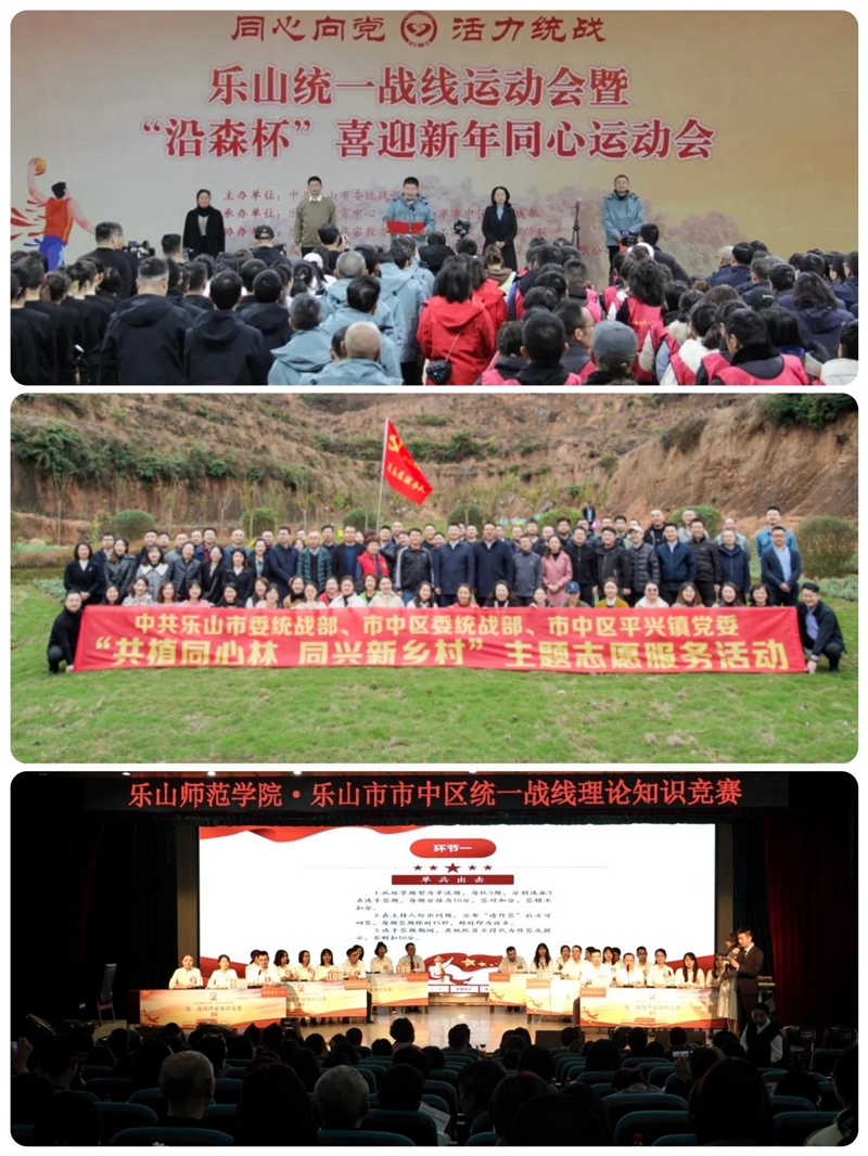 活动举办有声有色。以丰富的活动为载体,加强统一战线思想政治引领,促进党建工作入脑入心。圆满举办乐山市统一战线“同心向党·活力统战”第一届运动会,来自市委统战部、市级统战组织等部门、团体和各区、市、县统战系统的18支队伍、530多人参加运动会,向全市统一战线展现了市中区统战系统团结向上、凝心聚力的风采;举办乐山师范学院·乐山市市中区统一战线学习贯彻党的二十大精神暨纪念“五一口号”发布75周年知识竞赛活动,组织12支队伍、60名选手参加比赛,切实推动理论学习往实里走、往深里走;开展“共植同心林·同兴新乡村”主题活动,组织统战成员70余人前往平兴镇滑石村开展植树活动,为同心共建美丽新乡村贡献统战力量。