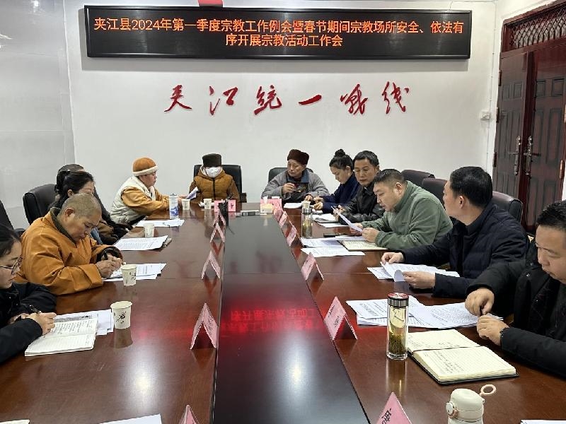 会上,传达学习习近平总书记重要文章《完整、准确、全面贯彻落实关于做好新时代党的统一战线工作的重要思想》、市委八届八次全会精神、县委十五届六次全会精神,讲解《汉传佛教教职人员奖惩办法》,通报2023年全县宗教工作开展情况,安排部署春节期间宗教领域重点工作。