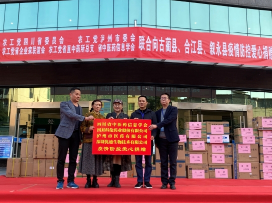 11月12日,农工党四川省委、省企业家联谊会、省直中药所总支,省中医药信息学会联合向合江县、古蔺县、叙永县疫情防控爱心捐赠活动在泸州市古蔺县人民医院举行。