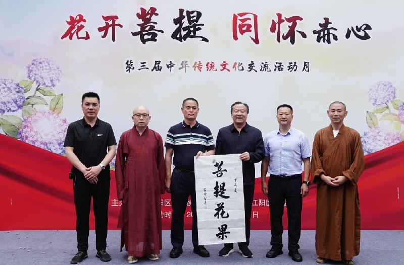5月18日,由泸州市江阳区佛教协会举办的“花开菩提·同怀赤心”中华传统文化交流活动月在江阳区金龙寺开幕。江阳区宗教界代表人士、信教群众代表、文艺界人士参加开幕仪式。泸州市民宗局、江阳区委统战部主要负责同志出席活动。