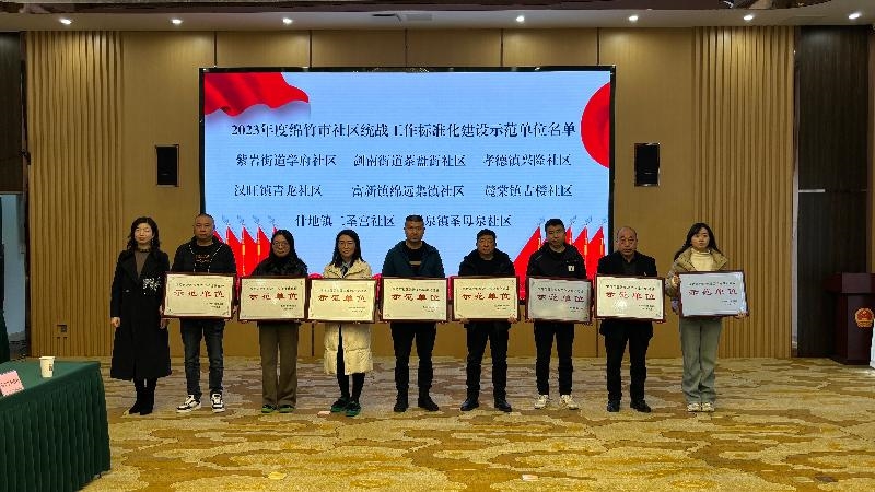 会议还对4个“坚定文化自信、坚持中国化方向”示范场所、10个民族团结进步创建标准化建设单位、8个社区统战工作标准化建设示范单位进行授牌。