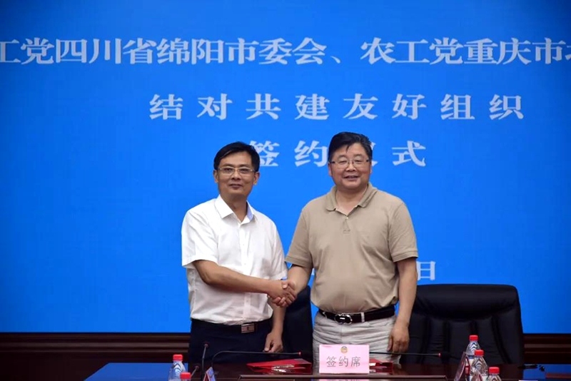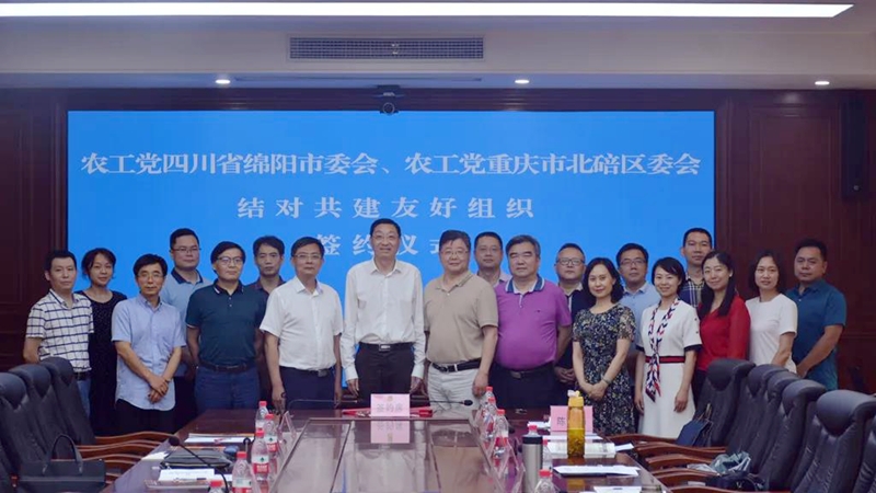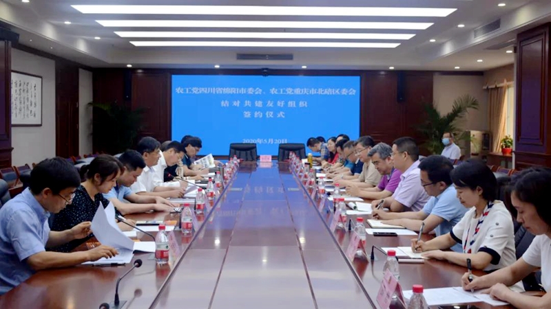 5月20日,农工党四川省绵阳市委会、农工党重庆市北碚区委会结对共建友好组织协议签署仪式在渝举行。农工党重庆市委会专职副主委姚树,中共北碚区委常委、统战部部长、区政协党组副书记吴萍出席签约仪式。农工党北碚区委会主委张奕,农工党绵阳市委会主委沈其霖在会上签署结对共建友好组织协议书。